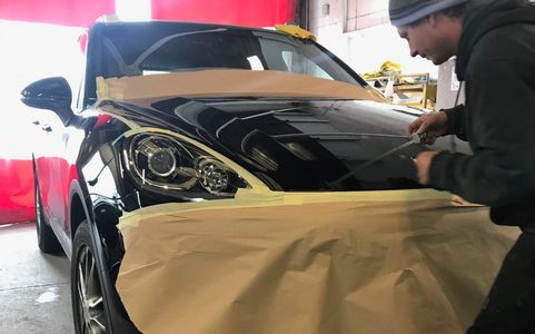 Preparation is crucial in all stages of a body repair. Upon completion of panel beating, filling and sanding, the panels are then masked up. A Prep paste is then applied for smoothing of the body panels that will be undergo the next stage of priming.